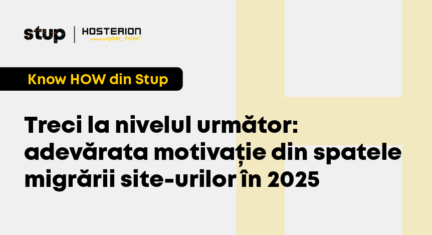 La Stup găsești tot ce ai nevoie dacă vrei să începi sau să crești o afacere: o comunitate de peste 38.957 de membri, evenimente gratuite unde poți învăța despre schimbări fiscal, digital marketing, vânzări și multe altele și peste 20 de parteneri cu servicii la preț preferential pentru comunitatea Stup. Astăzi povestim cu echipa Hosterion powered by cyber_Folks, partenerul Stup care îți oferă servicii complete de găzduire și domenii pentru o prezența stabilă și sigură în mediul online. Și dacă vrei să afli mai multe despre Stup, intră aici.